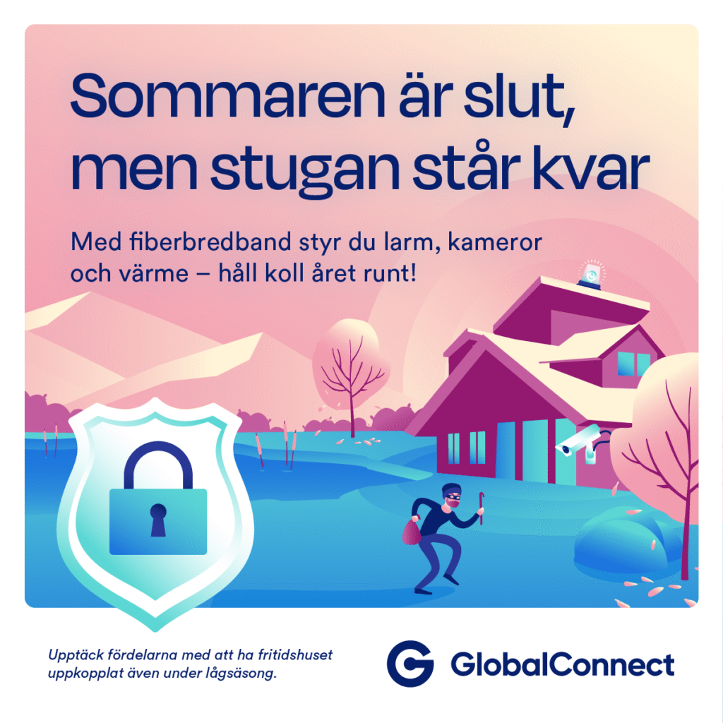 Även när sommarstugan står tom under höst och vinter finns det många skäl att låta bredbandet vara aktivt. Larm, fjärrstyrning och smarta tjänster kräver en stabil uppkoppling. Med fiber håller du koll året runt.